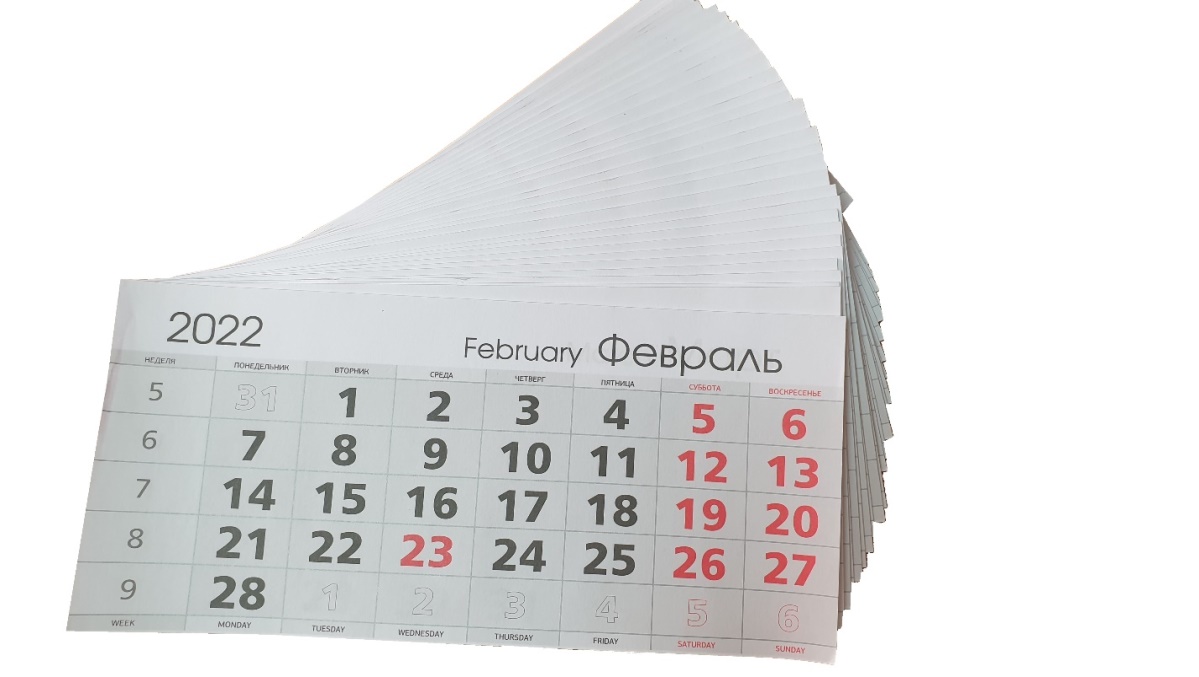 Проклеенная календарная сетка – принципиально новое решение для изготовления квартальных календарей. Использование проклеенных календарных блоков позволяет исключить операции перфорации и установки металлической пружины при сборке квартального календаря и ускоряет процесс производства квартальных календарей.
